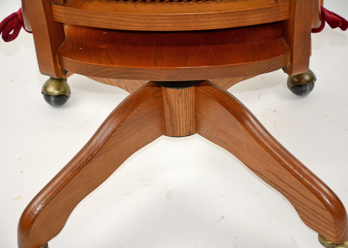 Nice vintage oak office chair with caned back, vinyl or leather seat. Seat height in the lowest. 37 high, 22 wide, 22 deep. Have you ever bought a office chair with the promises that it would offer the best back support for sciatica and back pain? Office chair porthos home selma office chairs with wheels, curved wooden armrests, height adjustable comfortable premium quality design luxury modern office seating in black size flash furniture high back office chair | white leathersoft office chair with wheels and arms.